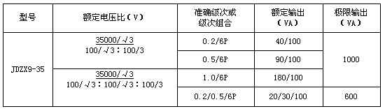 本型电压互感器采用环氧树脂浇注成型,为支柱式全封闭结构,适用于海拔高度1000m及其以下地区,频率为50Hz,最高工作电压为42kV的电力系统,连接在相与地间做电能测量及继电保护之用;二次测量绕组输出100/√3V电压,供电能测量用;100/3V电压为剩余电压绕组,接成开口三角形,用以发生接地故障时继电保护用。 技术参数: ·额定绝缘水平:42/95/200 kV。 ·本产品额定电压、准确级次、额定输出及极限输出见表。  |